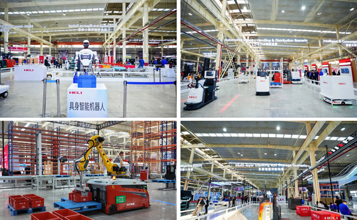 技术与场景的突破性呈现,更是本次大会的夺目亮点。合力首次公开具身智能物流机器人与人形机器人的复杂场景交互应用,让未来物流图景触手可及;行业首创“智金刚”智能物流机器人惊艳亮相,集“重载、柔性、多模”于一身,实现“拣选、码垛、拆零、补货、搬运”等全流程无缝衔接。46米超高“擎天柱” 高速堆垛机刷新行业高度,光通讯技术破解传统信号传输瓶颈,贯通式一体存储实现AGV双托盘协同高精作业,智能装卸技术攻克±1500mm停位误差难题,一项项创新成果,彰显着合力深耕技术的硬核实力。