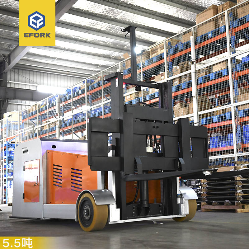 3.5吨重载平衡重式叉车AGV是由一个驱动/转向的前轮和2个定向轮的结构。它适用于运输各种托盘,箱或纸卷等搬运物料,并能够满足不同尺寸的负载单位。